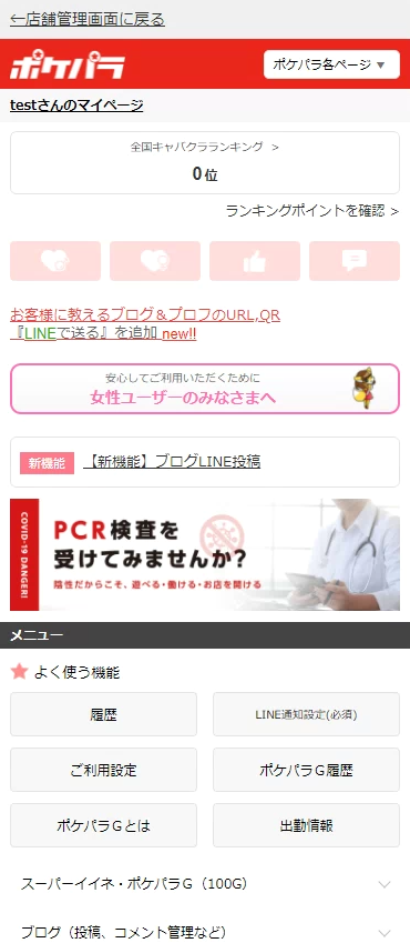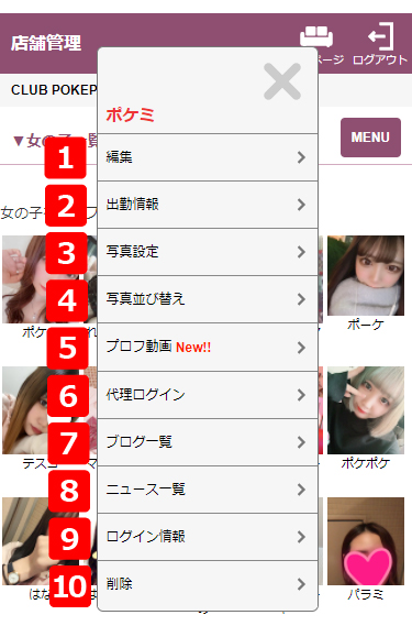 代理ログインすることで、女の子のマイページから確認や登録をすることができます。女の子からマイページについて質問があった時に実際の画面を見ながら説明すると分かりやすいです。