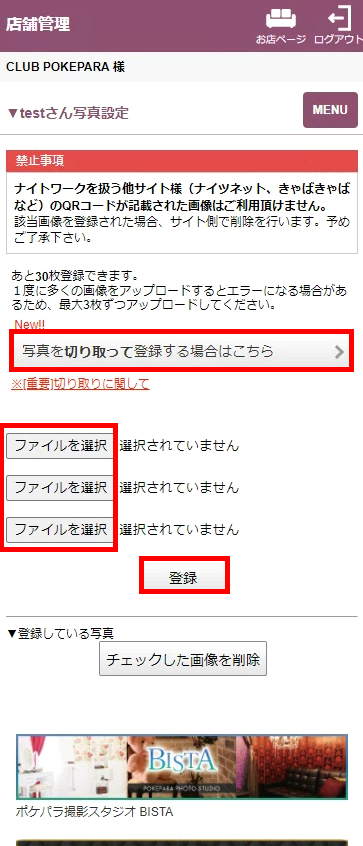 出勤状況・出勤時間を編集できます。設定方法は女の子出勤情報をご確認下さい。 - 写真設定