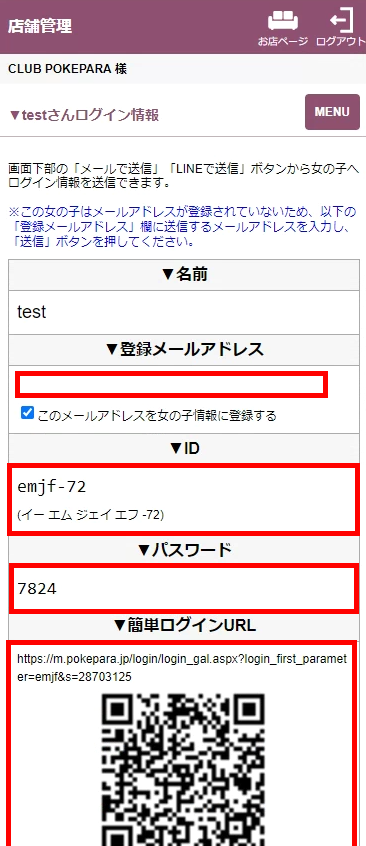 女の子ページ作成後、女の子へログイン情報を伝える時にこちらを確認します。