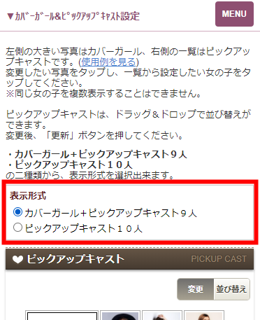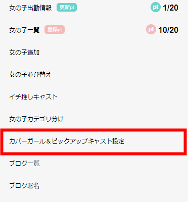 ▼トップメニューの【女の子管理】の中に【カバーガール&ピックアップキャスト】があります。