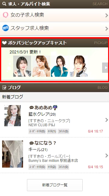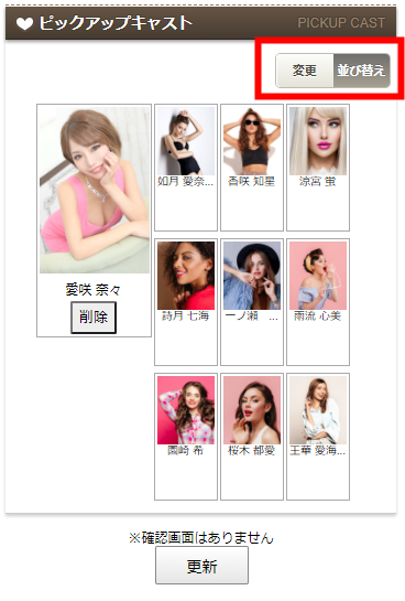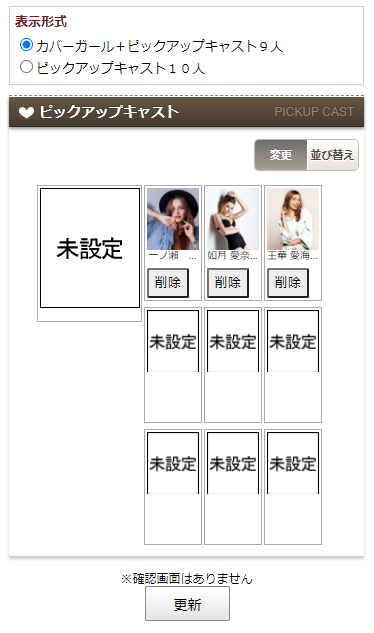 カバーガール&ピックアップキャスト設定をすると、お店ページ内でピックアップしたキャストをアピールすることができます。