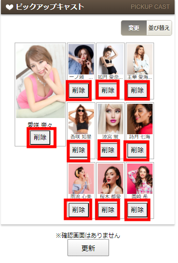 ▼【削除】をクリックするとカバーガール&ピックアップキャストに表示されません。