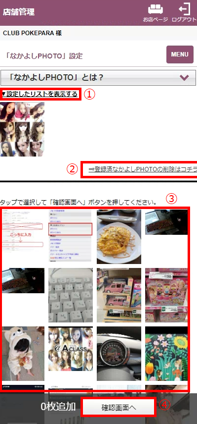 ②登録済なかよしPHOTOの削除