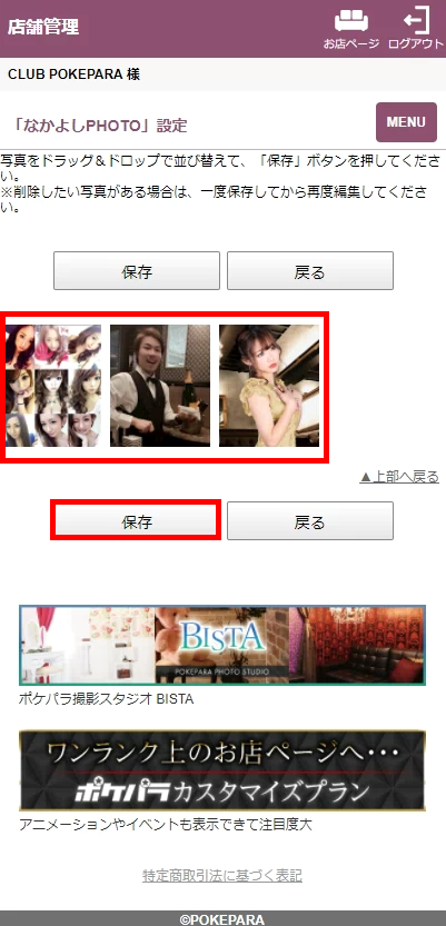 ポケパラ体入のお店ページに掲載する「なかよしPHOTO」の作成ができます。
