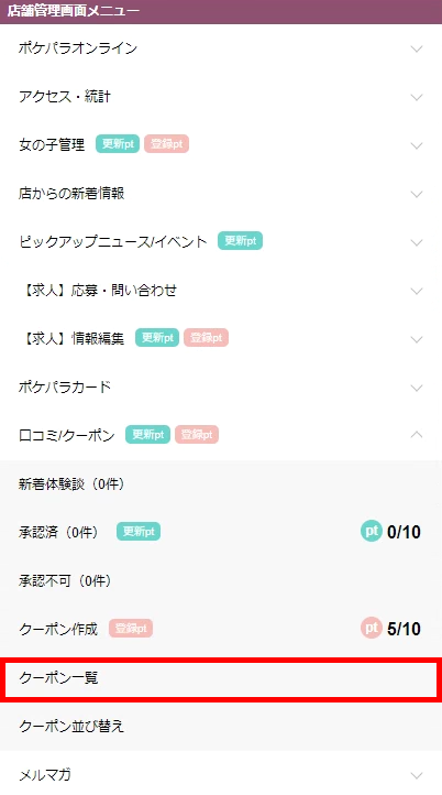 クーポン一覧を確認する