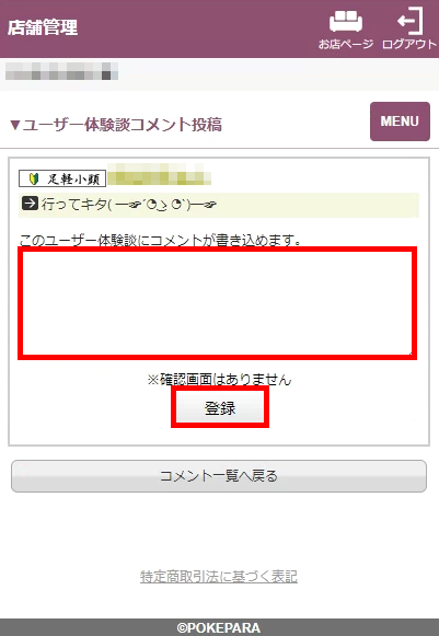 コメントを書き込んだら必ず「登録」ボタンをクリックしてください。※確認画面はありませんので登録後すぐに反映されます。