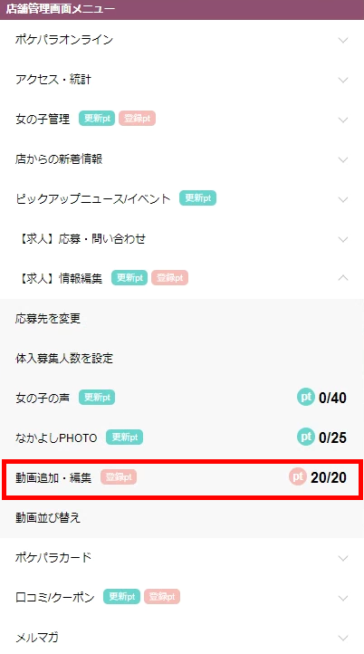 ポケパラ体入のお店ページに動画を追加することができます。