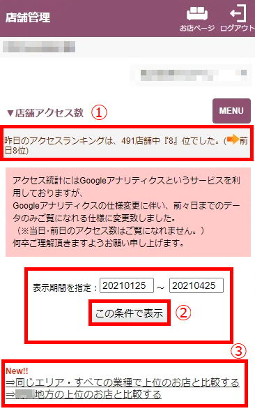 店舗アクセス数を確認する