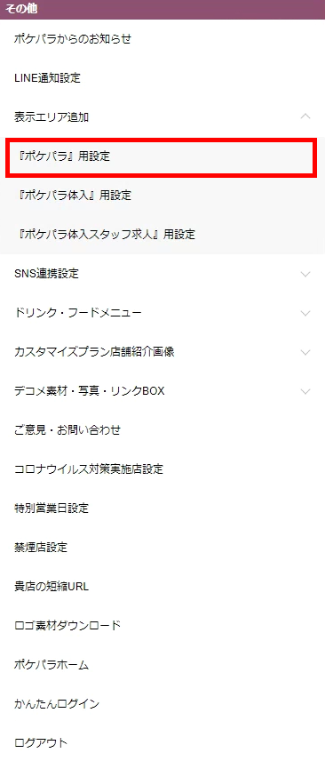 ▼トップメニューの【その他】の【表示エリア追加】の中に【『ポケパラ』用設定】があります。