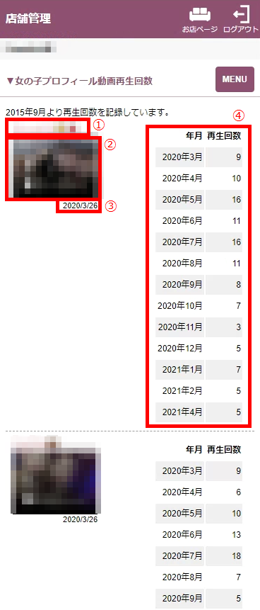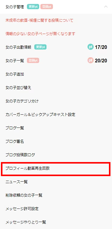 ▼トップメニューの【女の子管理】の中に【プロフィール動画再生回数】があります。