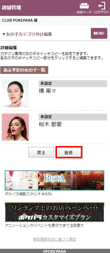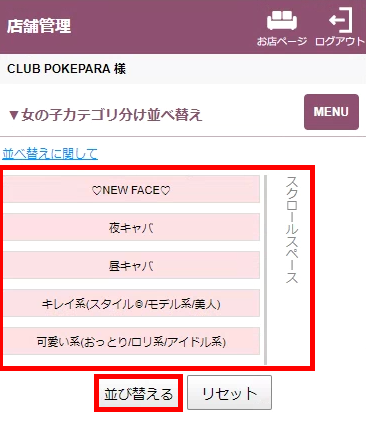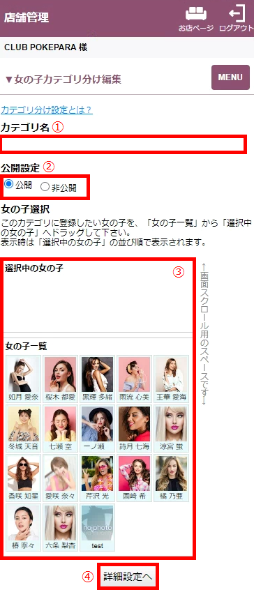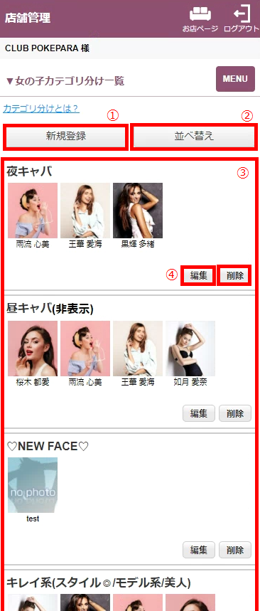 お店独自のカテゴリで女の子表示することができます。作成したカテゴリは、女の子一覧ページに表示されます。
