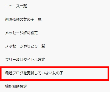 ▼トップメニューの【女の子管理】の中に【最近ブログを更新していない女の子】があります。