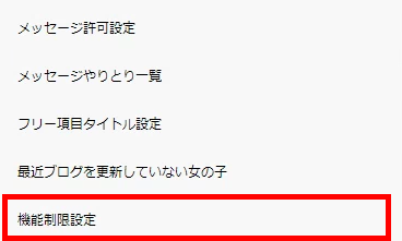 ▼トップメニューの【女の子管理】の中に【機能制限設定】があります。