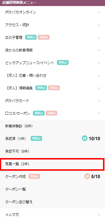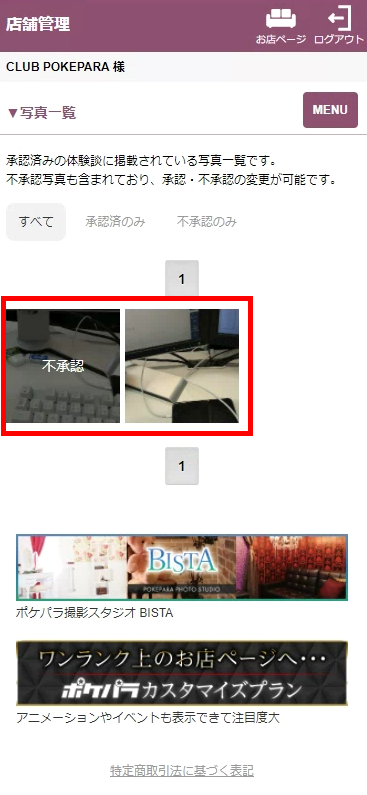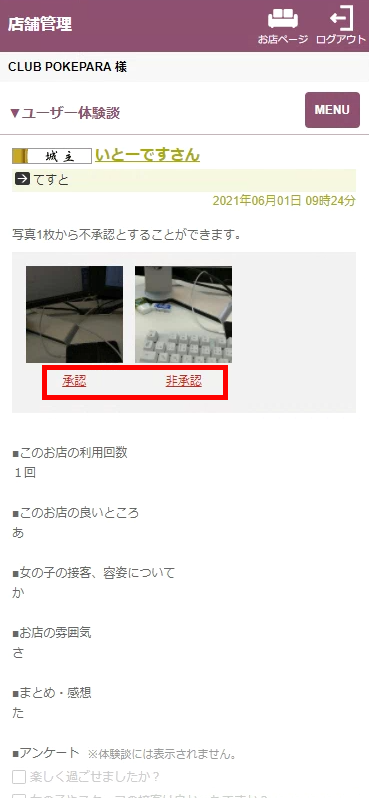 口コミで投稿された写真を承認・不承認に変更することができます。